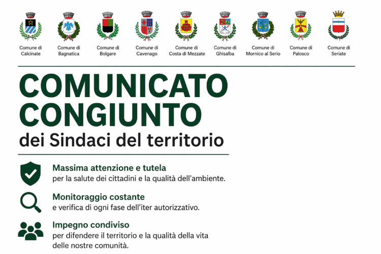 I Sindaci del territorio esprimono forte preoccupazione in merito al progetto di realizzazione di un nuovo impianto di smaltimento rifiuti nel Comune di Calcinate, notizia giunta in modo del tutto inatteso.